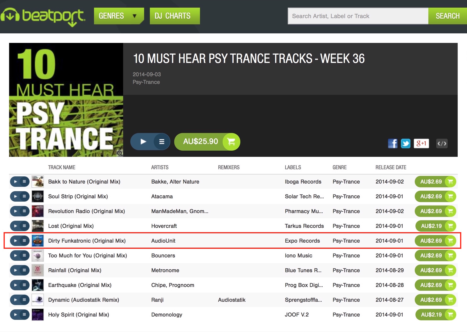 Since then AudioUnit has been steadily releasing a number of EP’s and singles year after year, beginning in 2014 his first solo EP “Dirty Funkatronic” and year after year there after with all 5 EP’s reaching into the Top 10 on beatport’s Psy-Trance Top 100. Now with many releases and EP’s with NANO Records, Zero1-Music, Iboga, IONO, Future Music Records EXPO Records & 3rd eye Japan and more.